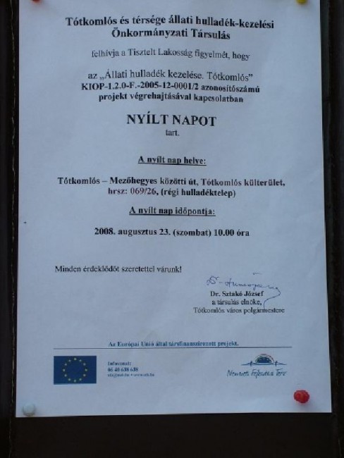 "Tótkomlós Város Önkormányzatatát a Magyar Élelmiszerbank Egyesület támogatja"