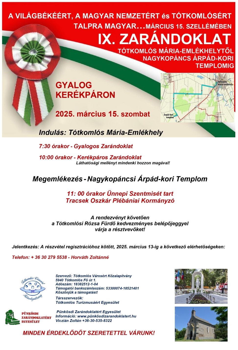 IX. ZARÁNDOKLAT TÓTKOMLÓS MÁRIA-EMLÉKHELYTŐL NAGYKOPÁNCS ÁRPÁD-KORI TEMPLOMIG