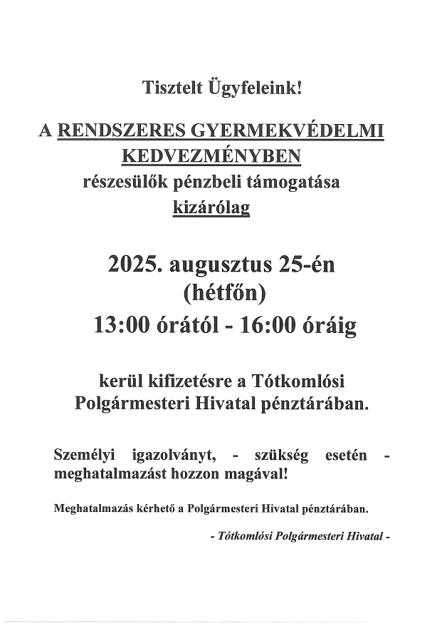 Tájékoztató a RENDSZERES GYERMEKVÉDELMI KEDVEZMÉNYBEN RÉSZESÜLŐK számára nyújtott pénzbeli támogatásról